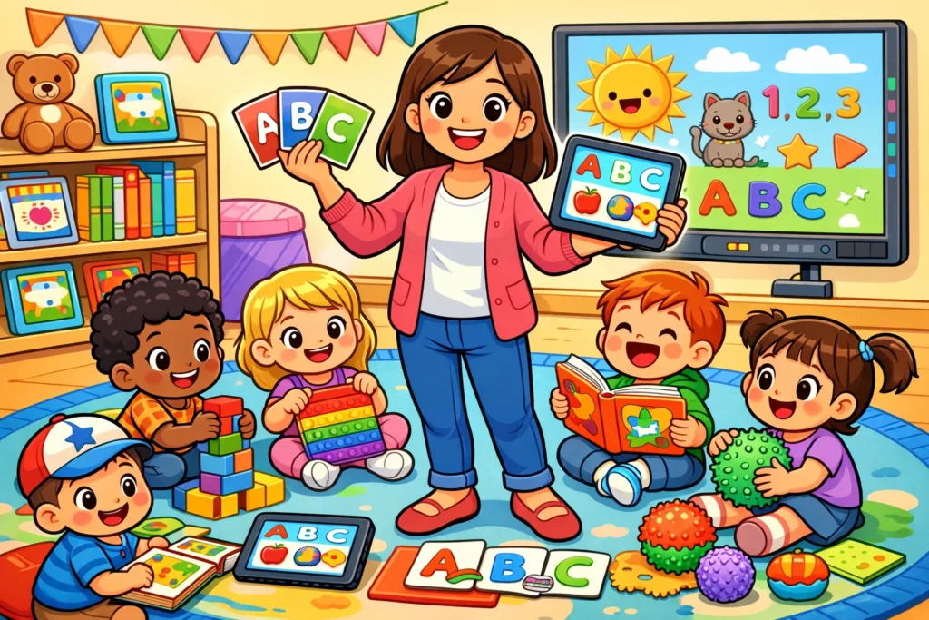 Life Lessons Made Fun: Essential skills like tying shoelaces, using utensils. Colorful Minds: Interactive learning for shapes, colors, numbers, and even ABCs and learning the alphabet.